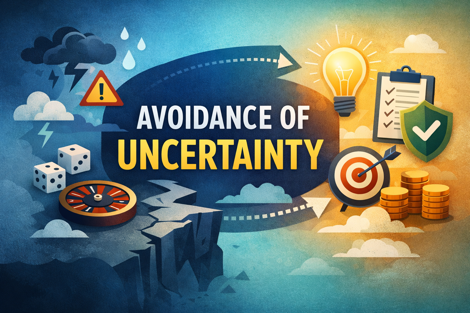 不安回避は、意思決定で生じる「不確実さ由来の不安」を避けるために、情報・保証・前例・ルールといった“確からしさ”を求める傾向です。