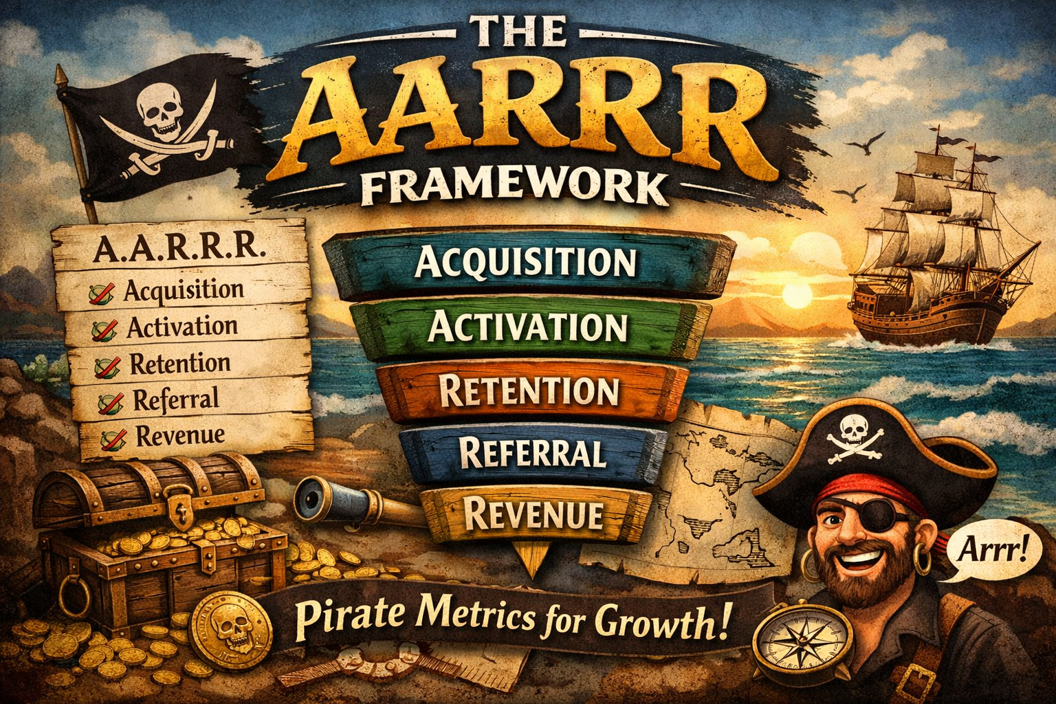 AARRR(Acquisition / Activation / Retention / Referral / Revenue)という頭字語が、英語で発音すると海賊の掛け声 “Arrr!” に聞こえるためです。