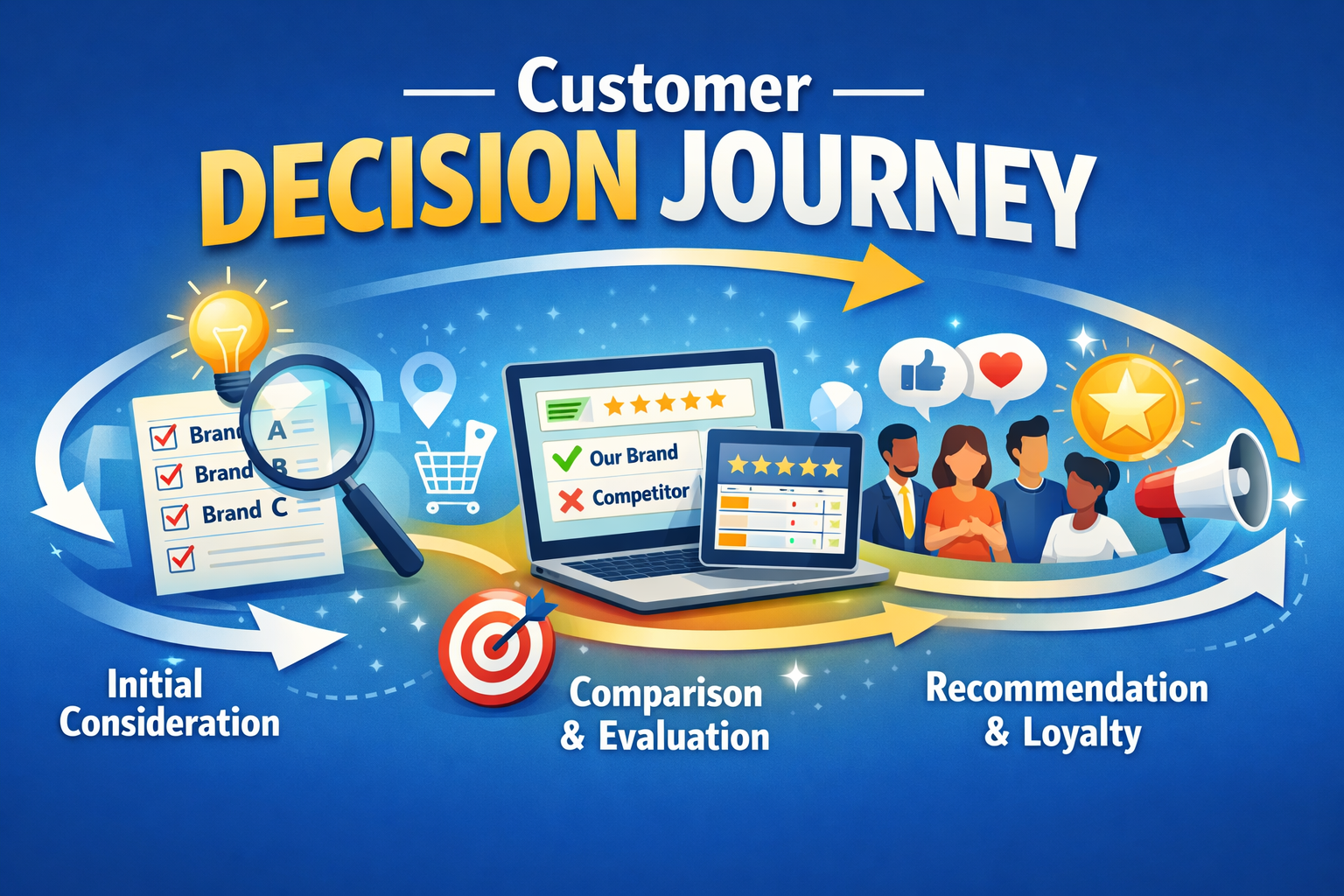 Consumer Decision Journey(CDJ / Customer Decision Journey)は、購買がファネルのように一直線ではなく、比較・レビュー・体験を往復しながら進む現実を捉える意思決定モデルです。