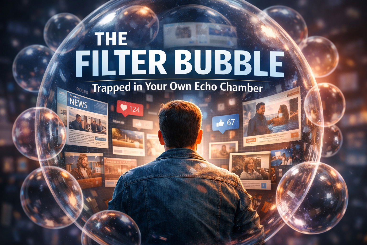 フィルターバブルとは、アルゴリズムが個人の検索履歴やクリック傾向を学習し、好ましい情報のみを優先的に表示することで、利用者が自分とは異なる視点や価値観から遮断されてしまう現象。