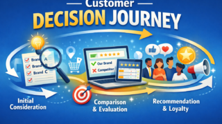 Consumer Decision Journey(CDJ)を4フェーズと3つのKPIで整理。ファネルで見落としがちな評価・購入後の勝ち筋を、施策優先度と投資配分に落とし込みます。